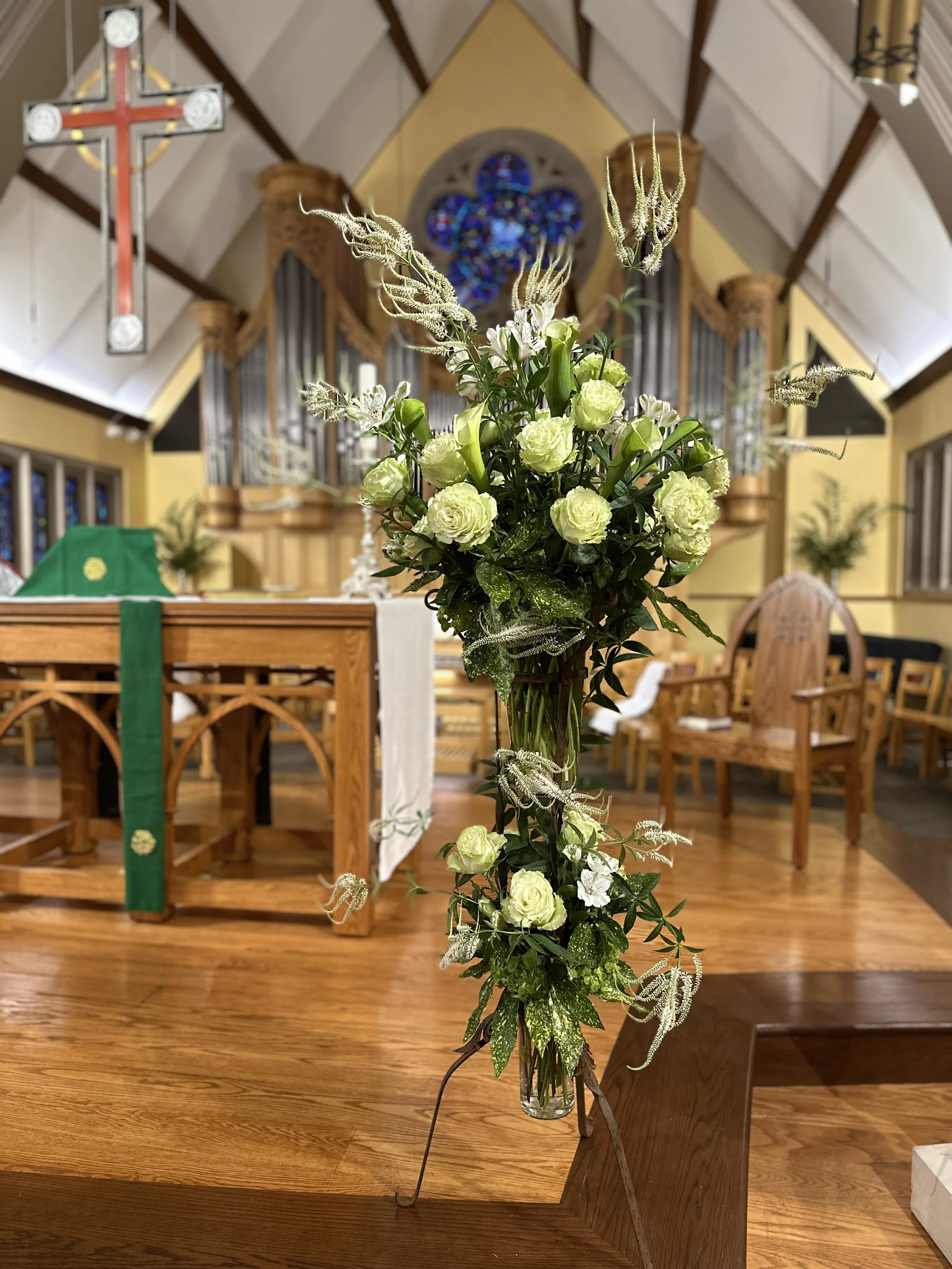 Flower Guild volunteers sign up to serve every 4-6 weeks. Training in flower arrangement will be offered. Each week, a Guild member purchases fresh flowers either from a local florist, wholesaler or Costco/Trader Joe’s and arrange them for the altar before Sunday morning. Time required each week is typically 1-2 hours. Containers, floral foam and other supplies for the arrangements are supplied by the church.
